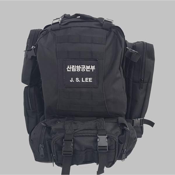 The overall bag is divided into five and can be connected with a strap when necessary. From forest fire extinguishing tools to personal safety items can be carried at once and removed if necessary. The main bag has a capacity of 55 liters.