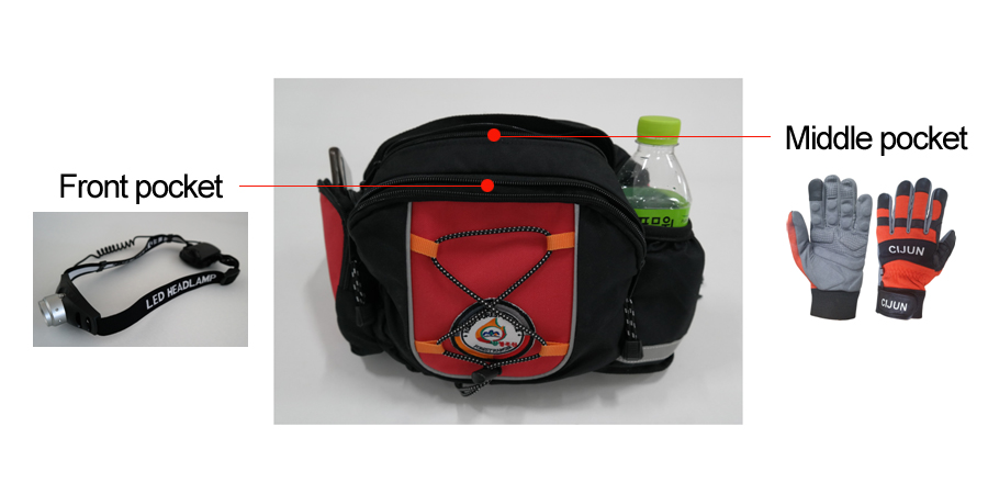 This product is distributed to the forest fire extinguishing support team to extinguish the forest fire. When the forest fire is not big, there are simply head lantern, glove, etc. It's in the form of a waist bag.