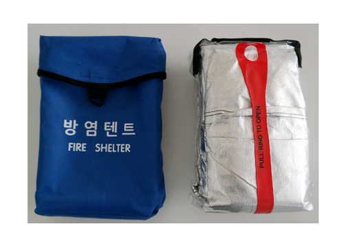 Prevent direct burn damage. Used special fabric that withstand high temperatures and does not burn. Especially, Fireproof blankets can directly protect against flames by reflecting the heat of radiation when trapped in forest fires. Passed the test criteria for performance evaluation of forest fire extinguishing safety equipment.