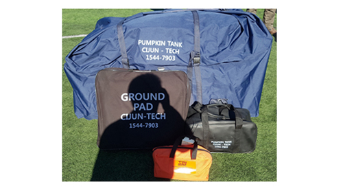 Ground pad for protecting and positioning the pumpkin tank.